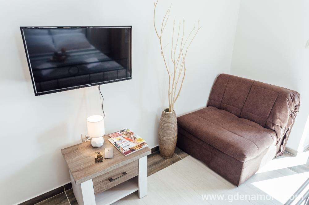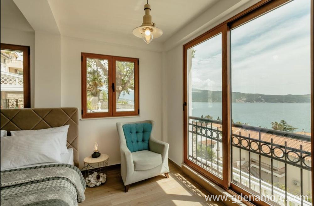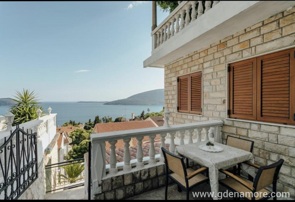 Незабравимата гледка към залива е едно от основните предимства на нашето настаняване. Не по-малко важно е обаче да споменем местоположението: ние се намираме само на 200 метра от центъра на града, а всички основни исторически забележителности на града (автентичен център на града с часовниковата кула, кулата Канли, Форте Маре,...) се намират наблизо , точно както и други съоръжения, които могат да бъдат важни по време на престоя си в Херцег Нови: Централната автогара се намира на 200 метра от нас, и има супермаркет, пекарна, аптека.